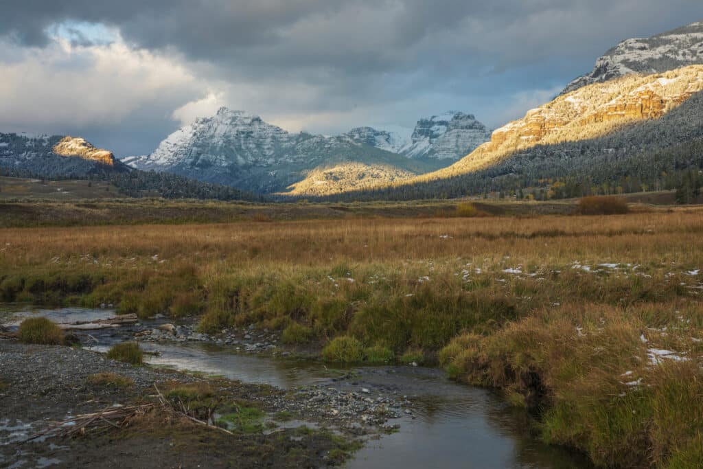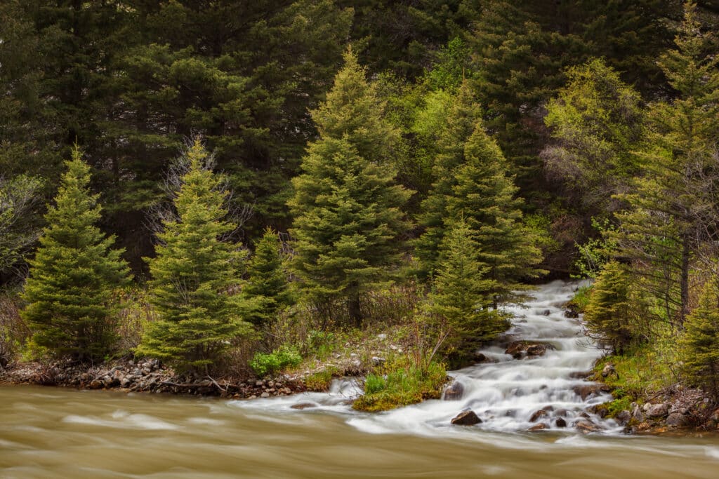 A tributary of the Gallatin River, Taylor Fork is accessible via a hike through the Gallatin National Forest. The stream meanders through meadows and timbered areas, offering anglers solitude and the chance at native cutthroat trout.