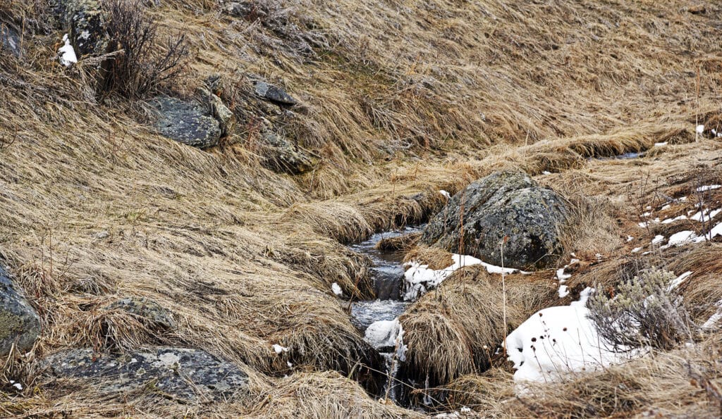 A year-round tributary of Little Antelope Creek runs the length of the property. Aspen trees grow along the tributary, and large rocks create small pools throughout the stream. There is also a year-round spring with good flow that is piped and comes out of the hillside along VanBergen Lane.