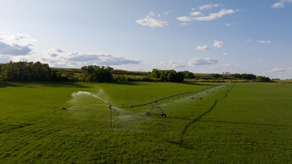 Teton Co-op water from Eureka Reservoir is stored water that can be managed accordingly. The private water rights include ample water to irrigate 633 acres with 560 miners’ inches from the Teton River as well as Baker Spring Creek. The Teton water is delivered to the same infrastructure that delivers the Eureka Reservoir water via the Teton Canal. Water is delivered to multiple parts of the property and used by three center pivot systems, three wheel lines, and flooded fields.