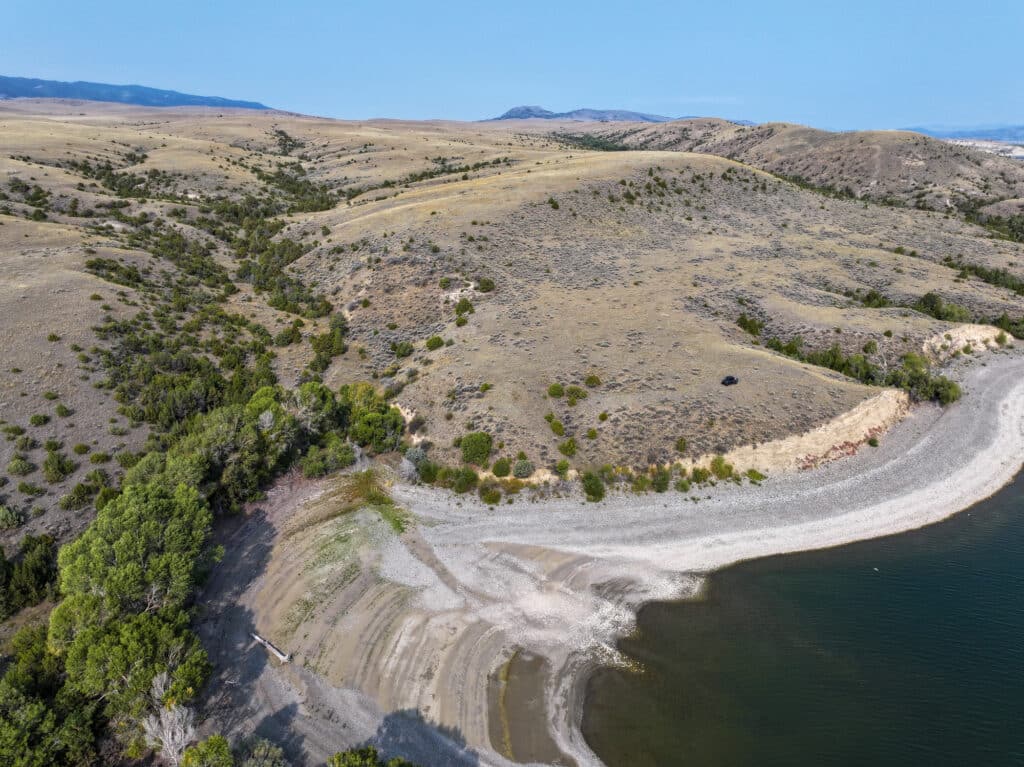 The property is bordered by Bureau of Reclamation land to the north and west along the lake, 80 acres of BLM land to the southwest, and large private ranches to the south and west. Access is provided via a one-mile, 60-foot easement on a two-track road that is primarily undeveloped for ingress/egress and utilities. There are provisions in the easement where an access roadway may be constructed outside the limits of the easement if necessary.