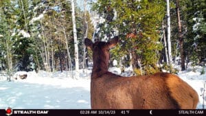The ranch is located in the Kennedy Peak Area 12 for elk, and Area 79 or Region D for deer hunting. The terrain, dense cover, and natural wildlife trails on the ranch make an incredible habitat for all kinds of big game animals, as well as small game, birds, and predators. Elk, mule deer, whitetail deer, moose, black bears, mountain lions, and coyotes have all been seen and routinely inhabit the property. The Medicine Bow National Forest borders the ranch on the north and south ends. This continuous tract of public land consists of over 22,000 contiguous acres of additional hunting and recreation. One of the best secrets of the ranch is the viewing and exclusive access to parts of the national forest that cannot be easily seen or accessed by the general public.