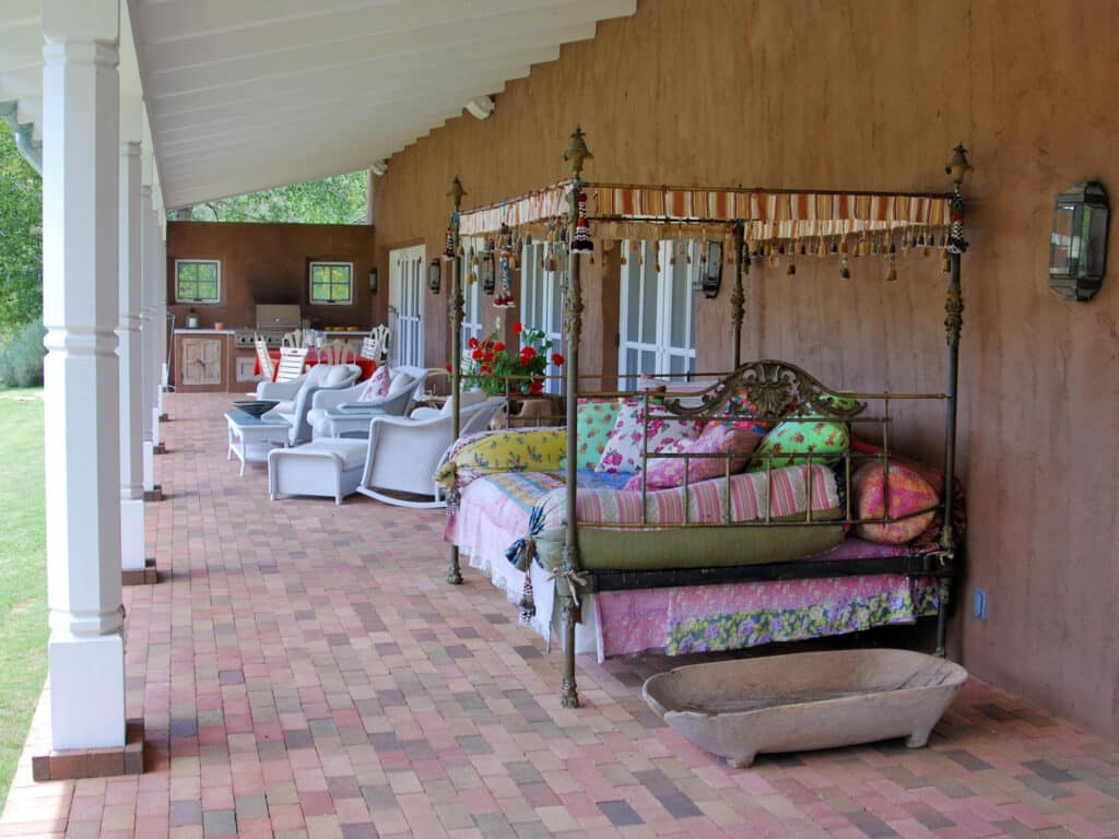 Upon beholding the trout-rich waters of the Pecos River with the privacy and serenity offered by the surrounding landscape, Fonda had found her personal sanctuary. Her deep appreciation and respect for the historical significance of the area is evident in her tasteful creation of the Spanish colonial-style River House and her authentic restoration of the existing improvements.