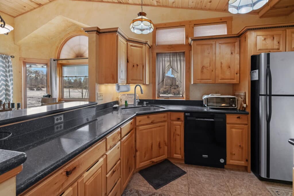 Designed by Michelle Linville Architect and constructed in 2004, this three-bedroom, two-bath house features a rustic mountain aesthetic throughout its 1,413± square feet. The covered patio leads through the main entrance into an open living area, dining room, and kitchen, which is showcased by knotty pine wood ceilings and earth-toned textured walls that create a warm, cabin atmosphere. Well-placed windows and skylights provide a warm feeling with lots of natural light. The focal point of the living area is the striking dry stacked stone wall framing the gas stove fireplace insert and custom timber mantle. The under-cabinet lighting lights up the kitchen which is equipped with updated stainless steel and black appliances and plenty of storage in the custom cabinets. The laundry room, with recently updated washer and dryer, and plentiful storage, is conveniently located between the kitchen and the attached 650± square-foot two-car garage. Positioned off the living area, there are three bedrooms within earshot of the Mill Creek capturing the lulling sounds of the year-round creek. The master bedroom faces the Tobacco Root Mountains, with plenty of windows to enjoy the spectacular view. The master bath has a jacuzzi tub with a separate shower and pine cabinetry, which maintains the home’s cohesive style. The two guest bedrooms share a bathroom. In-floor radiant heat keeps the house at a constant temperature throughout. The home’s abundant windows frame mountain views from every room, while the covered porch and deck provide outdoor living space to enjoy the scenic rural setting in all seasons.