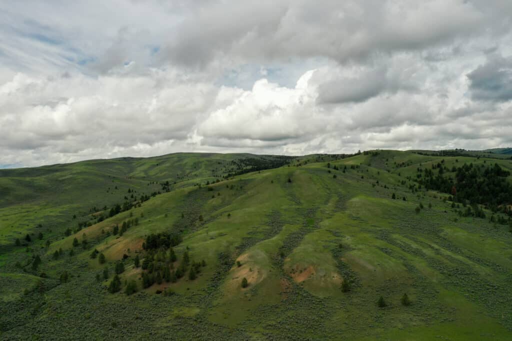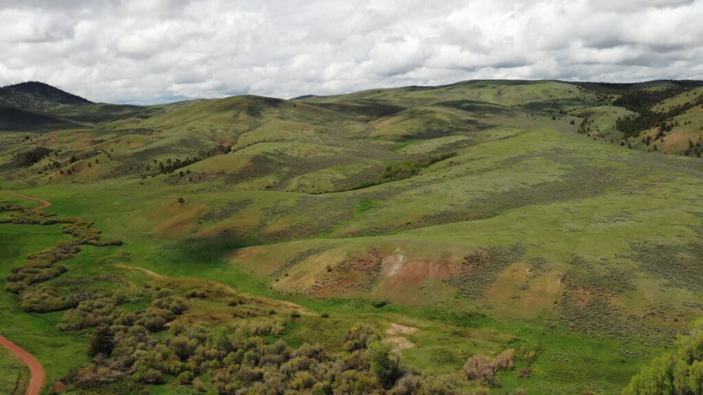 The elevation gain on the Ranch is little over 1,000 feet, with the highest point around 6,000 feet above sea level on the northern boundary of the Ranch and the lowest around 4,980 feet on the southwest portion along the Spring Creek. The improvements sit at about 5,187 feet.