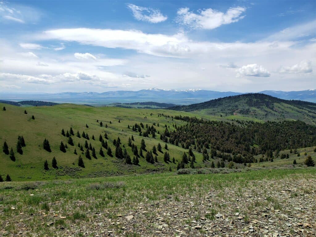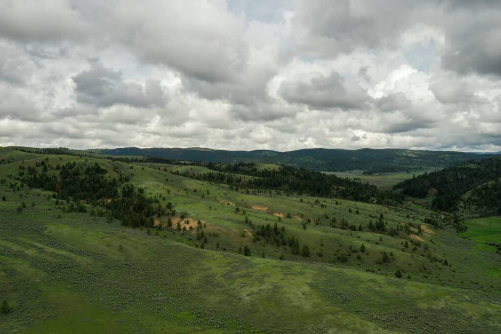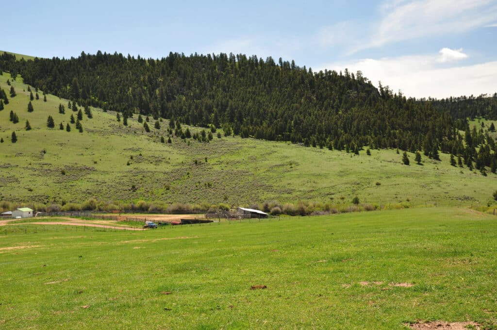 McGuire Spring Creek Ranch sits in an exceptionally private valley yet with easy access to a maintained county gravel road – no other structures or neighbors are readily visible from the majority of the Ranch. Views extend to the horizon past the Ranch boundaries across the neighboring large ranches to the distant mountains. Mountains surround the Ranch from the Little Belts in the Lewis and Clark National Forest to the north of the Ranch to the Big Belts to the southwest – Baldy and the Twin Sisters peaks are easily seen from headquarters. The Ranch landscape is predominantly a rolling pasture with native grasses and sagebrush punctuated with draws, gullies, and pockets of timber. The varied topography gently slopes from the Ranch entry gate into the riparian creek bottom below via a well-maintained gravel road that leads to ranch headquarters. The riparian area is populated with willows and grasses which grow thick in the sub-irrigated meadows along the spring creek. Two DNRC irrigation rights allow for flood irrigation on the creek meadows. The land gains elevation to the north heading away from the headquarters area towards the Rabbit Creek drainage. Rabbit Creek flows seasonally and provides stock water on the upper acreage – enough to sustain 30 cow-calf pair for summer grazing.