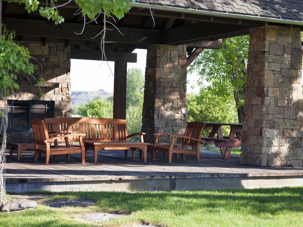 The Owner’s Home was designed by Locati Architects based in Bozeman, Montana, and is a beautiful compliment to the stunning Missouri River setting. The use of natural materials, stone, and earth tones help the Estate blend seamlessly into a grove of mature cottonwood trees that create a private and exclusive river enclave.