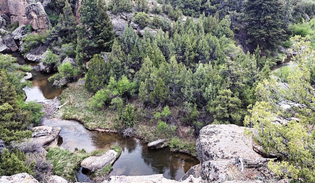 As one of the most diverse ranches on the market today, the Ranch at Bates Creek provides exceptional sporting opportunities with excellent privacy. Only 45 minutes from Casper, the Ranch is easily accessible yet provides a distinct quality of seclusion. Perhaps it is the water rushing over the water falling into the pool below or catching large trout in the deep pools of Bates Creek. Somehow, you get lost in time and forget the cares of life on the outside world. With 3,138 ± total acres, including 1,166± deeded, 1,506± BLM lease and 465± State lease, you have plenty of room to move about – hunting, fishing, hiking, horn hunting, and rock climbing. In addition to the deeded and leased ground, there is access to thousands of additional acres of adjoining BLM and State land. A restored one-bedroom bunkhouse, an insulated Morton building, a small workshop, a horse barn, and corrals provide modest yet functional improvements. The lush river bottom attracts a variety of wildlife including elk, mule deer, antelope, mountain lion, sage grouse, and turkey.
