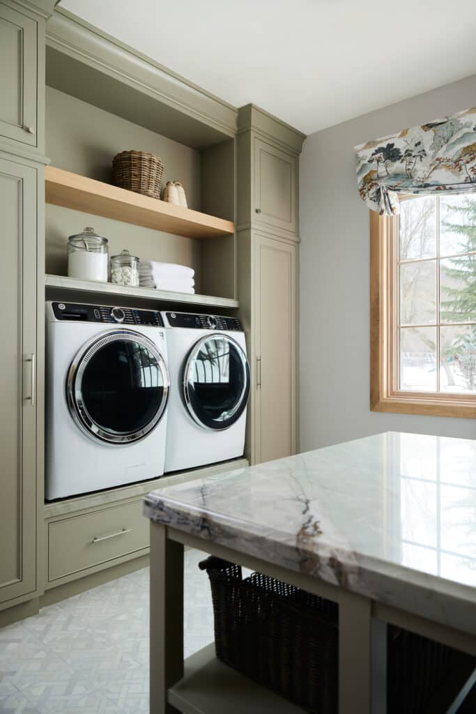 The second-level guest suite matches all the details found in the lower-level suite and includes another washer and dryer tucked smartly in a closet along the balcony for guest convenience. The windows frame peaceful mountain and river views, and family and guests will undoubtedly appreciate the extravagant experience.