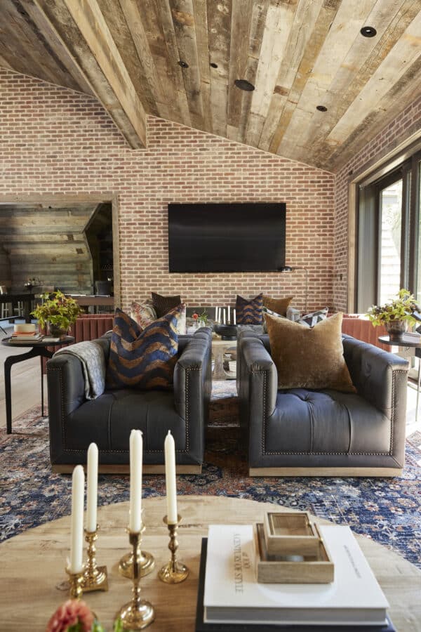 Tim: One of the challenges designers face when building large scale homes is making them livable for a couple or small family on a daily basis, yet also able to host large scale gatherings in comfort. The main home strikes that balance seamlessly and the addition of the Speakeasy provides a separate space for guests or gatherings with a completely different feel that is both rustic and very comfortable and welcoming. The combination really works well together. A home needs to “fit”—nobody wants to feel like they are walking around in Shaq’s shoes.