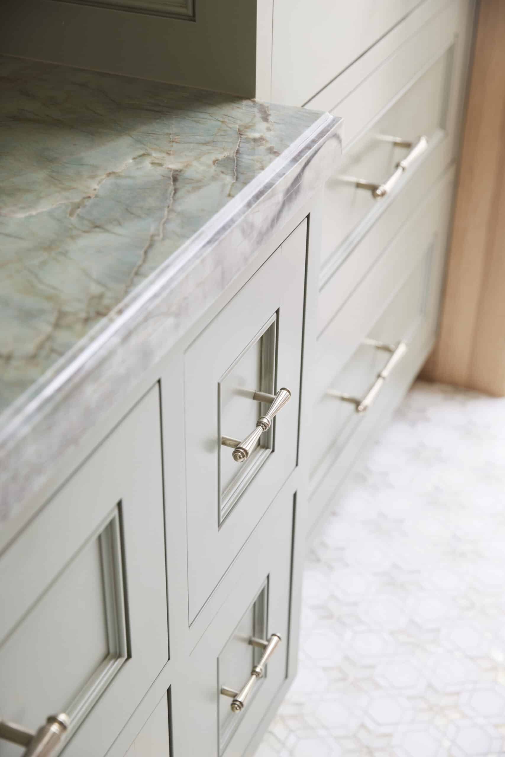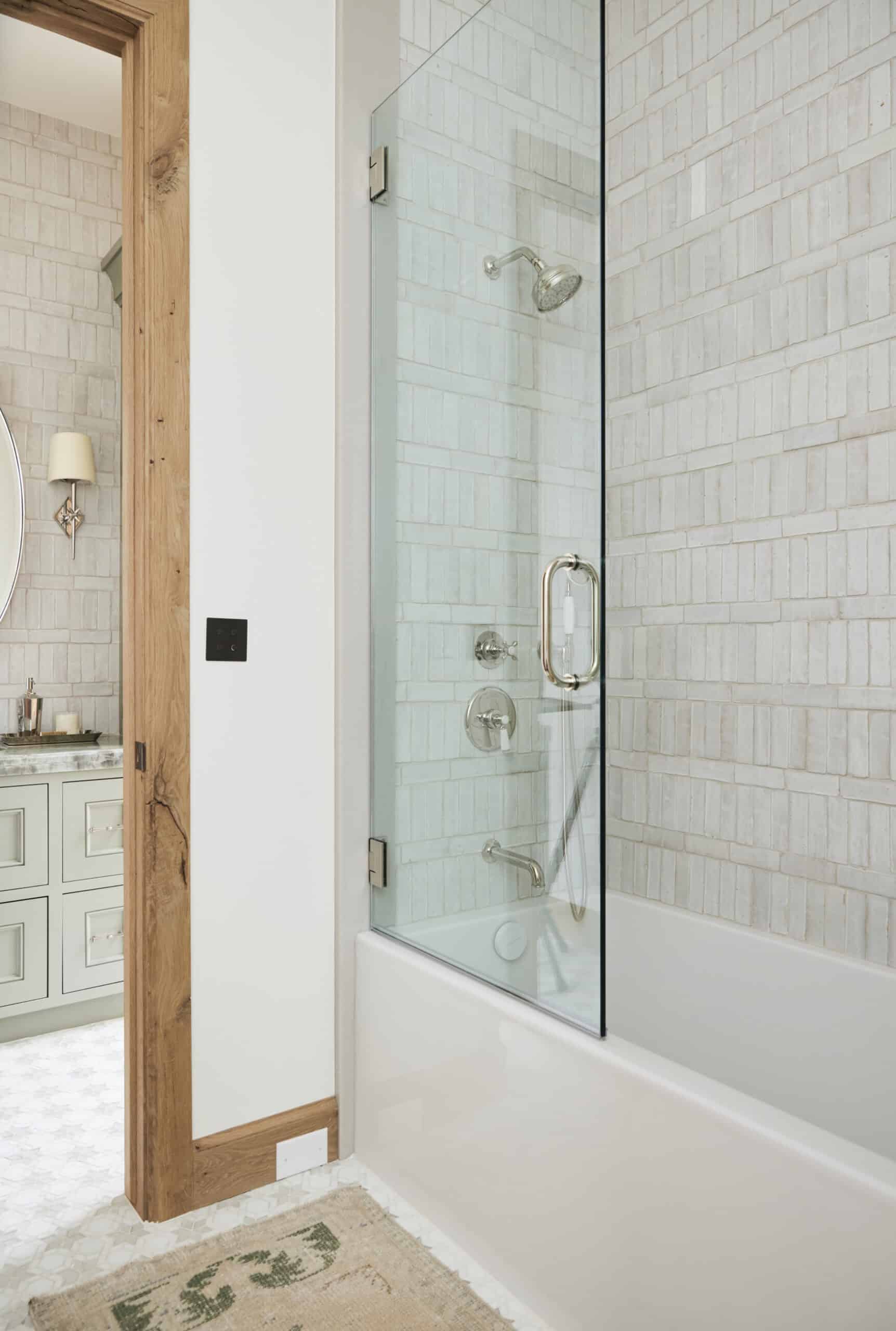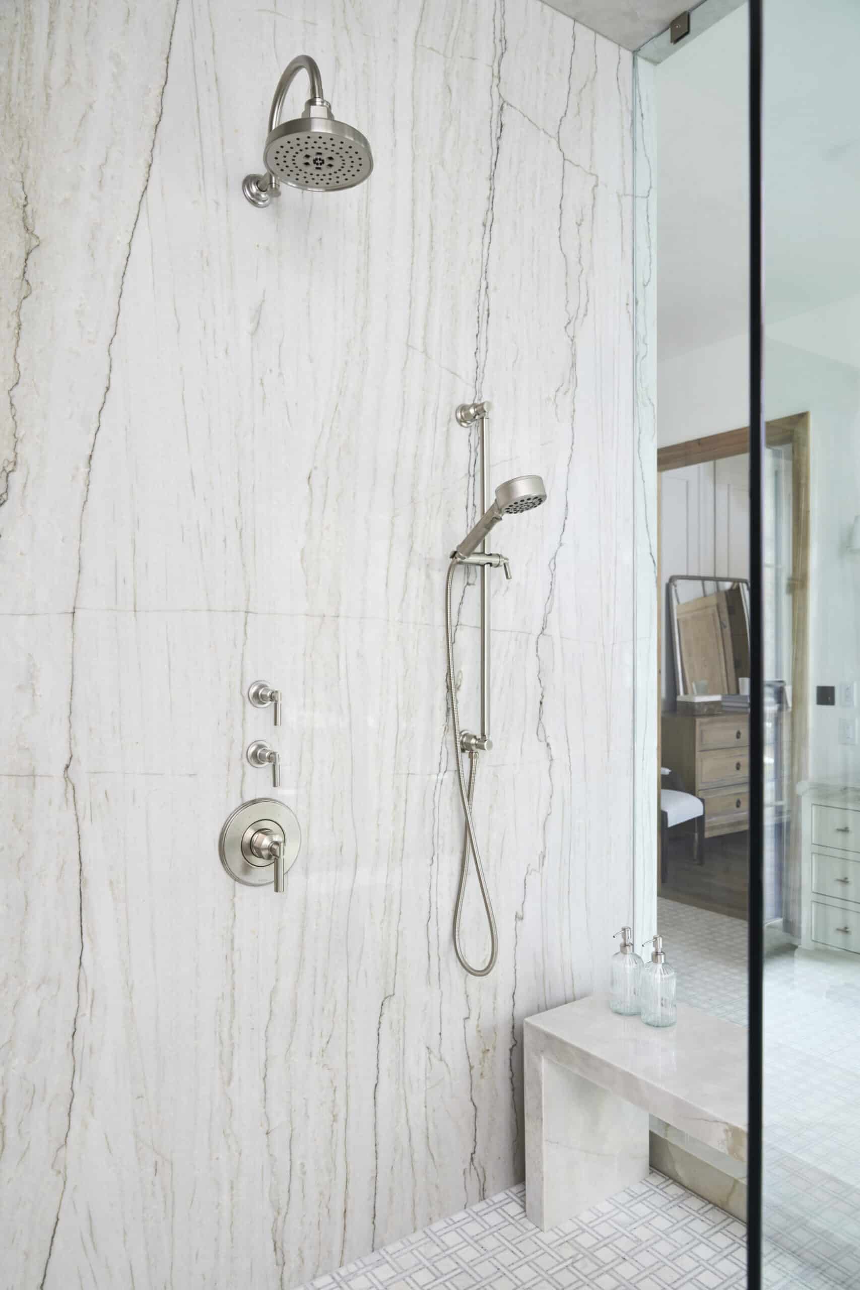 The guest suite bathrooms reflect the same elevated design as the rest of the home, blending classic French-inspired elements with modern functionality. Every detail, from the marble-topped vanities to tilework and lavish towels, contributes to a spa-like guest experience.