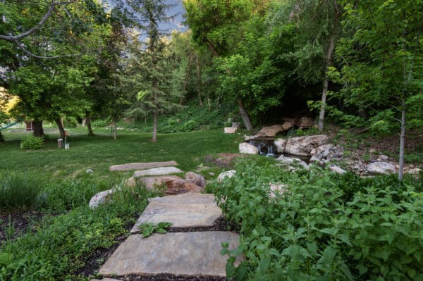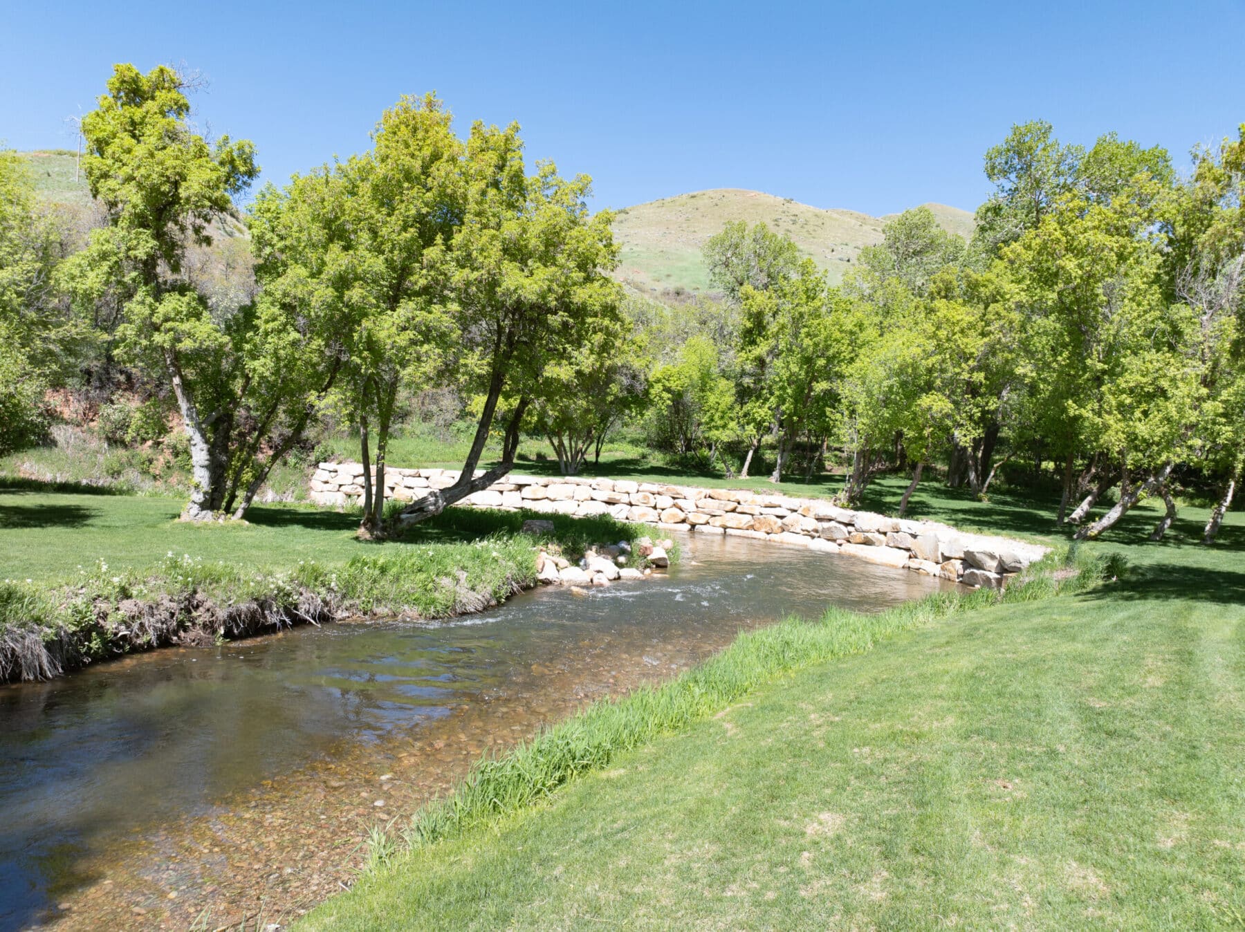 The ranch is located a couple of miles downstream from the regionally notable East Canyon Reservoir, which is the origin of the East Fork River that flows through the ranch improvements. This tailwater is an excellent fishery and creates a stunning ribbon of live water and a spectacular feature that accentuates the improvements and the canopy of mature trees, lush lawns, a trout pond, planting boxes, and water features, creating a remarkably refined yet serene escape. The tranquil river bottom experience sits at an elevation of about 5,300 feet, and the topography begins to change quickly as you drive the well-maintained road network that climbs into Sheep Creek Canyon and crosses the creek multiple times as you climb and gain elevation. The highest peaks on the ranch are over 8,300 feet, creating an impressive 3,000 feet of elevation gain in a dramatic, beautiful, and private backcountry experience that lives a world away from the luxury created along the East Fork River.