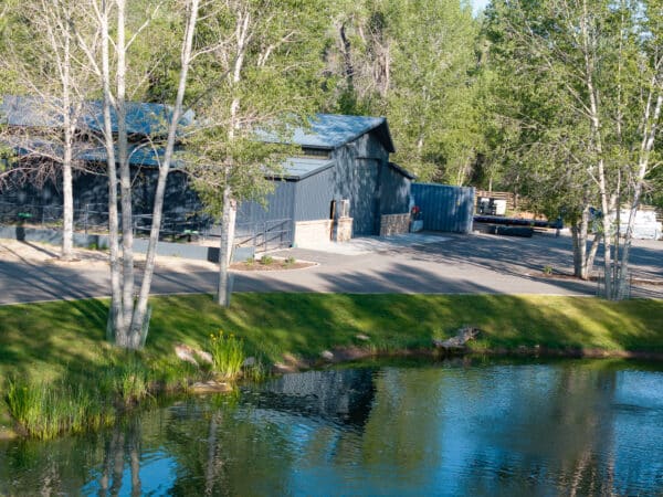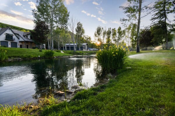 Sam: The home is a magnificent work of craftsmanship, built with the finest materials and technology available today. Everything’s top of the line, from the appliances to the plumbing fixtures. The Savant system gives you full control of lighting, climate, and music from your phone. No expense was spared to make it the best. But what really stands out is the setting. The East Fork River runs right along the house under a canopy of mature trees, with irrigated turf and a trout-filled pond just steps away. It is an incredibly beautiful and peaceful area to enjoy a cup of morning coffee or a quick fishing session between meetings, all just steps from the home.