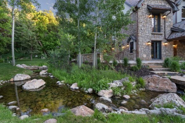 The centerpiece of the ranch is a 6,537± square-foot custom-built luxury home that combines timeless French architecture with refined modern design, complemented by a 2,640± square-foot “Speakeasy.” This unique secondary space blends historic urban elements into a distinct streamside mountain setting.