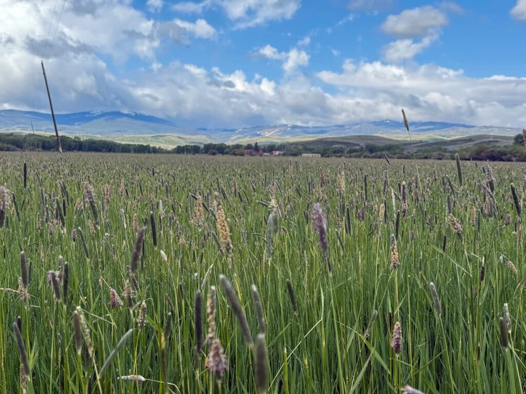 The elevation on the ranch ranges from approximately 7,300 to 7,400 feet above sea level. The area enjoys a high mountain valley climate with cool summers, crisp autumns, and snowy winters. Annual precipitation averages around 13–14 inches, with reliable snowpack in the winter months.